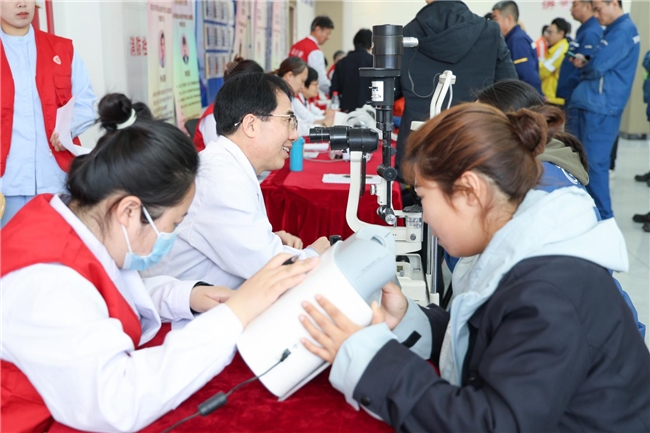“医生,我经常上夜班,眼睛总是干涩发红,有什么办法缓解吗?”“我这眼睛看远处有点模糊,是不是近视加深了?”面对职工们提出的各类眼部问题,王洪格副院长和团队一一给予专业解答,并结合个体情况提供护眼建议。他们不仅针对筛查出的初步情况提供专业的诊疗方案,还特别向职工科普了干眼症、视疲劳、眼表疾病等常见问题的预防知识,引导大家树立科学用眼、定期检查的健康观念。